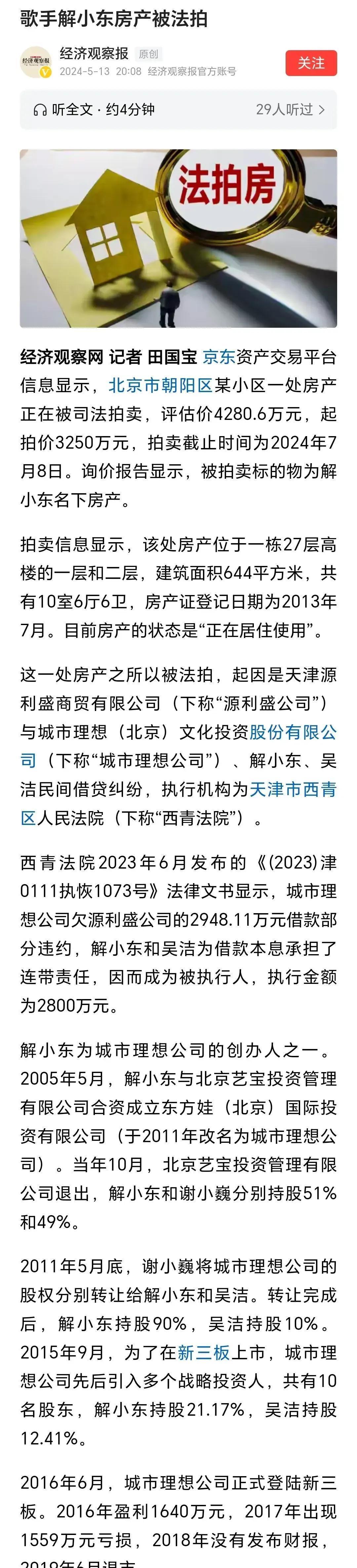 转战影视圈后,天然出演了几部作品,但反响平平。之后,他与细君共同涉足商界,履历了数次蜕变,以致一度成为亿万财主。但近日却有音讯传出,解晓东名下的房产因假贷纠纷被法拍,让东说念主不禁为他的商海之路合手了一把汗。